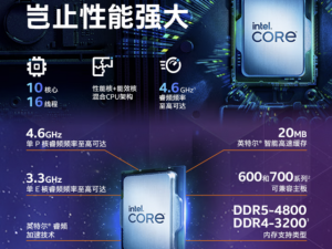 先进的架构与能效表现:英特尔 酷睿Ultra 5 230F基于英特尔第二代酷睿Ultra架构(Arrow Lake-S),采用台积电3nm制造工艺。其核心配置为6个性能核(P-core)加4个能效核(E-core),组成10核10线程,性能核最高睿频可达5.0GHz。这一代架构的能效核(E核)IPC性能提升高达32%,性能核(P核)IPC提升也达到9%,在提供强劲性能的同时,实现了出色的功耗控制。其基础功耗(PL1)仅为65W,最大睿频功耗(PL2)为121W,这意味着它发热量低,仅需百元级的风冷散热器即可轻松压制,非常适合打造静音、省电的ITX小主机或紧凑型M-ATX主机,尤其符合学生宿舍等对空间和噪音敏感的环境需求。