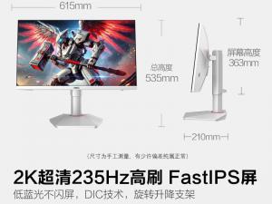 HKC G27M4 27英寸电竞显示器 2K Fast IPS 180Hz 1ms GTG 低蓝光护眼