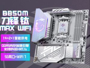 供电采用多相重负载 DrMOS 方案并覆盖厚实散热装甲,可维持高功耗 CPU 长时间满载运行的稳定性。板载双 PCIe 5.0 x16 金属加固插槽与多条 PCIe 5.0 M.2 接口,支持高速显卡与 NVMe SSD 直连,配合 Wi-Fi 7 与 5Gbps 有线网卡,满足超高速传输与低延迟网络需求。I/O 区提供 USB4 与 USB 3.2 Gen 2x2 Type-C 等高速接口,提升外设连接多样性与速率。