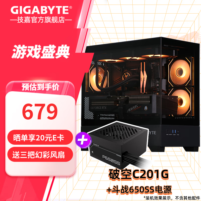 技嘉 破空 C201G全景式上下分仓机箱熏黑钢化玻璃侧透兼容顶360/侧240水冷散热器快拆式防尘滤网 破空C201G+650S